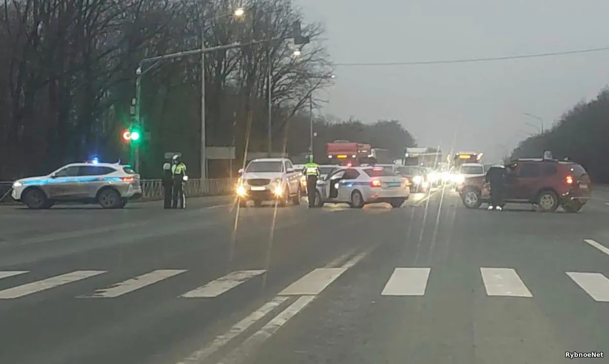 Авария с участием машины ДПС произошла на светофоре трассы М-5 в Рыбном