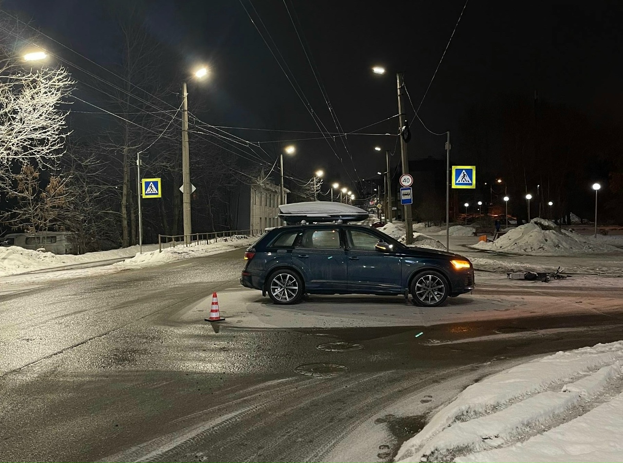 Авария случилась вчера в 21.00 на пересечении улиц Луначарского и Промышленной. 40-летняя водитель автомобиля Audi Q 7 не уступила дорогу и снесла курьера на электровелосипеде.