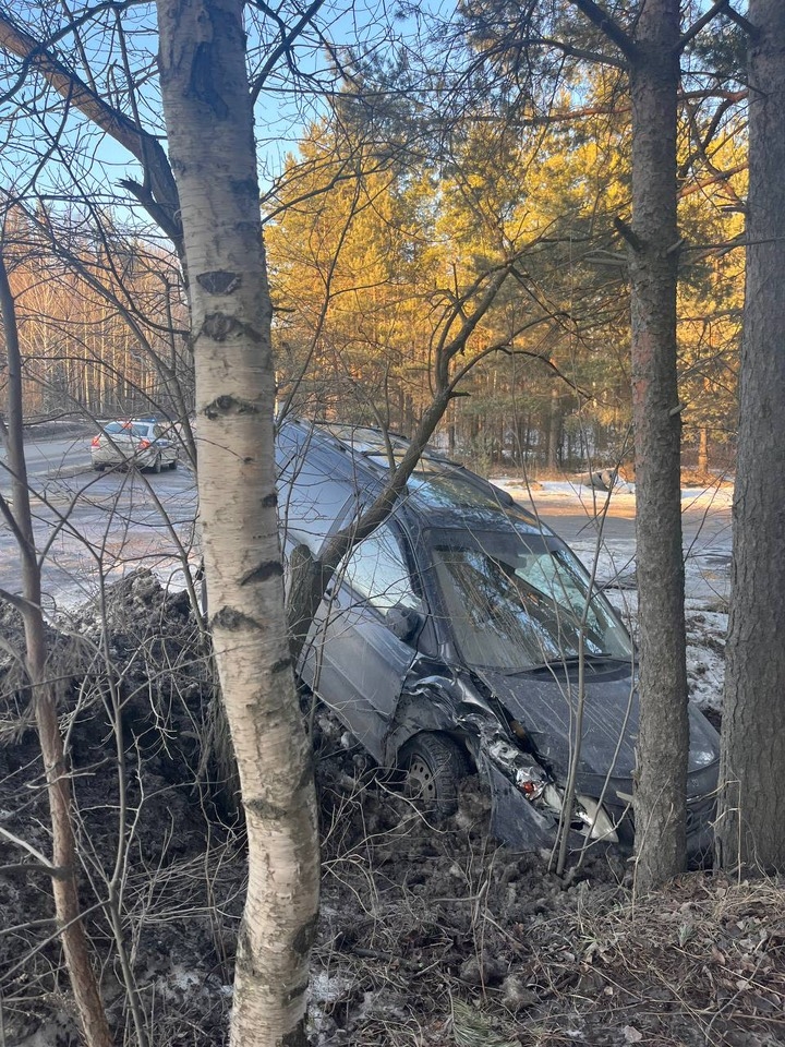 В 14.35 в районе дома № 18 по Соломенскому шоссе столкнулись Volkswagen Polo и Mazda. Как видно на фото, после удара автомобили вылетели с дороги. Mazda влетел в деревья, а Volkswagen Polo чуть не врезался в забор.