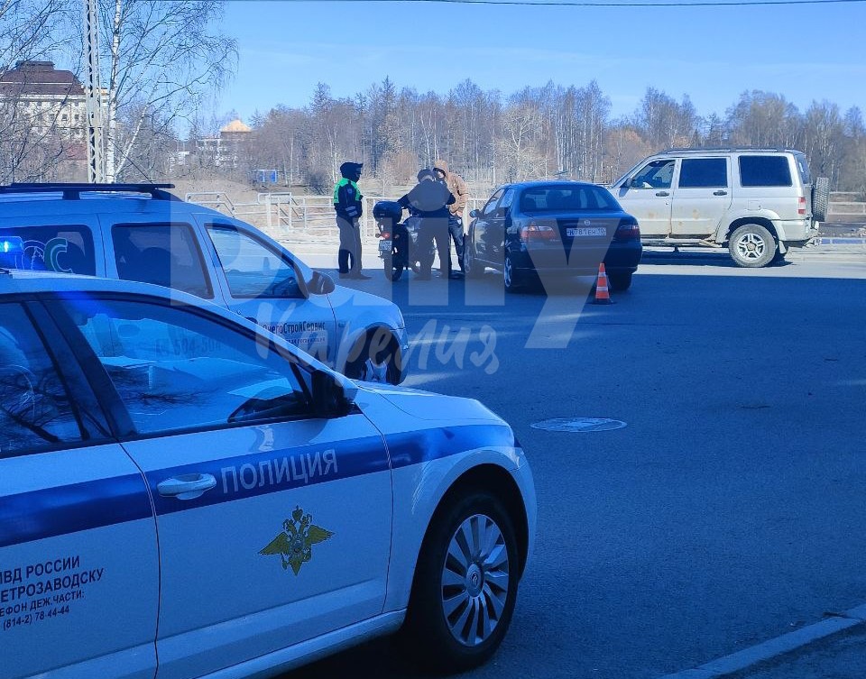 В Петрозаводске мотоциклист жестко врезался в машину и улетел на капот