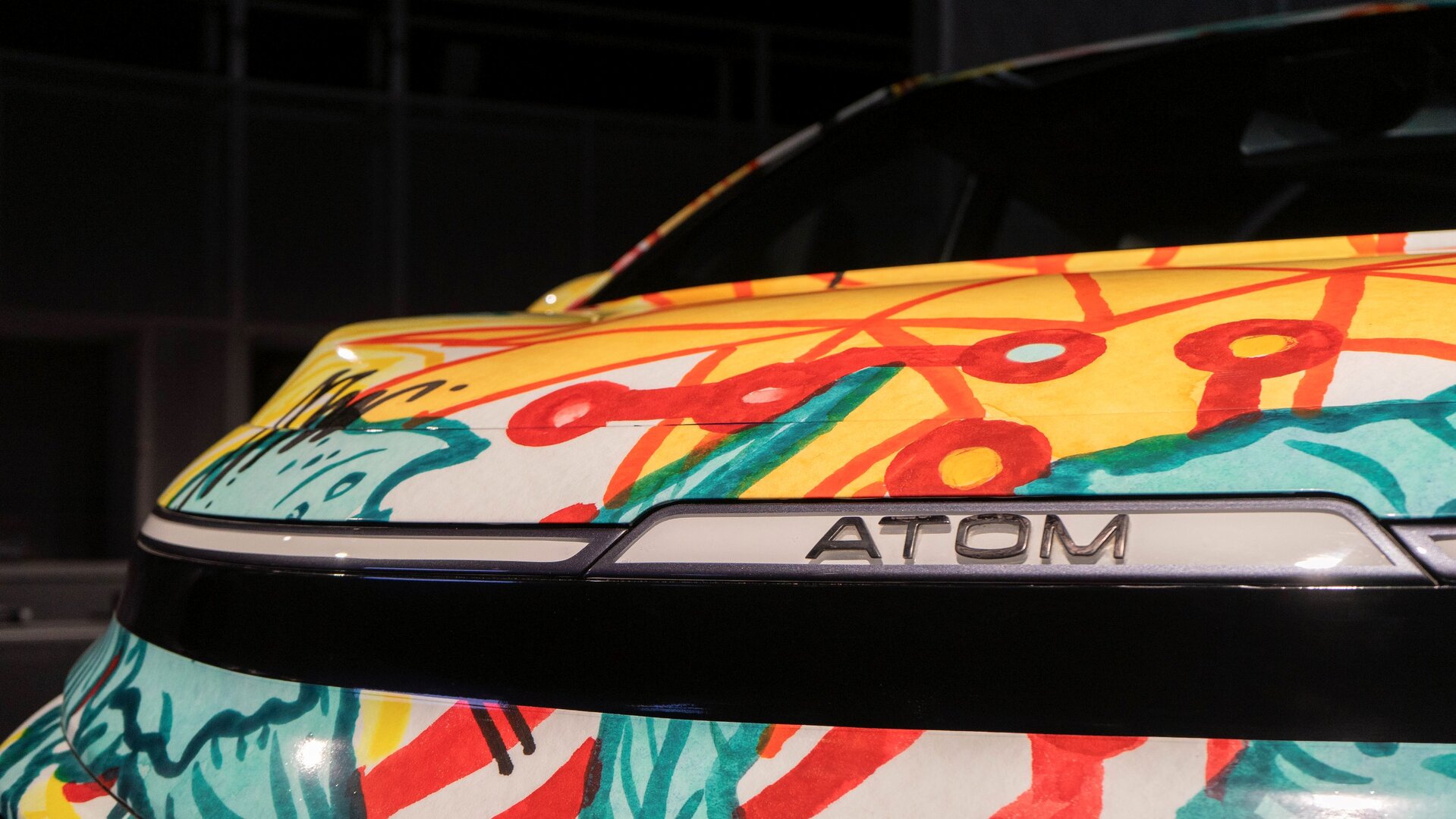 Одним из объектов выставки станет автомобиль Атом с уникальным дизайном кузова. Это работа художника Миши Most, который работал с каждой деталью машины по отдельности. Сначала он создал пять композиций, а затем наносил их на автомобиль. Дизайн был придуман специально для выставки в рамках совместной инициативы с компанией «Лаборатория Касперского».