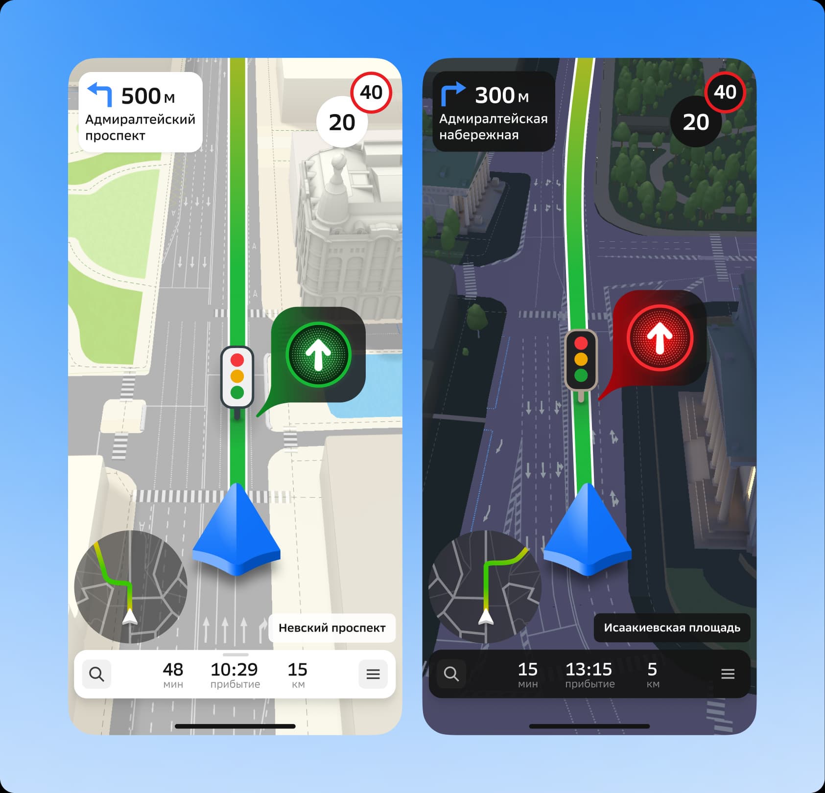 В конце марта 2026 года «Яндекс Карты» и «Навигатор» начали показывать сигналы светофоров в Санкт-Петербурге. 2ГИС первым в России начал показывать таймеры сигналов светофоров — сначала в Москве (апрель 2025), затем — в Новосибирске (декабрь 2025).